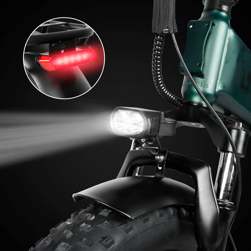 The T5 Electric Bicycle For Adults is equipped with a comprehensive high-performance lighting system, ensuring greater safety and convenience when riding at night or on complex road conditions. The integrated taillight and brake light enhance visibility and provide a clear signal to vehicles and pedestrians when slowing down. The rear left and right turn signals make your turning intentions clear, improving road safety. Additionally, the powerful LED headlight offers excellent illumination on dimly lit streets or remote paths, ensuring clear visibility. These thoughtful features enhance your riding experience, making every journey safer and more efficient.