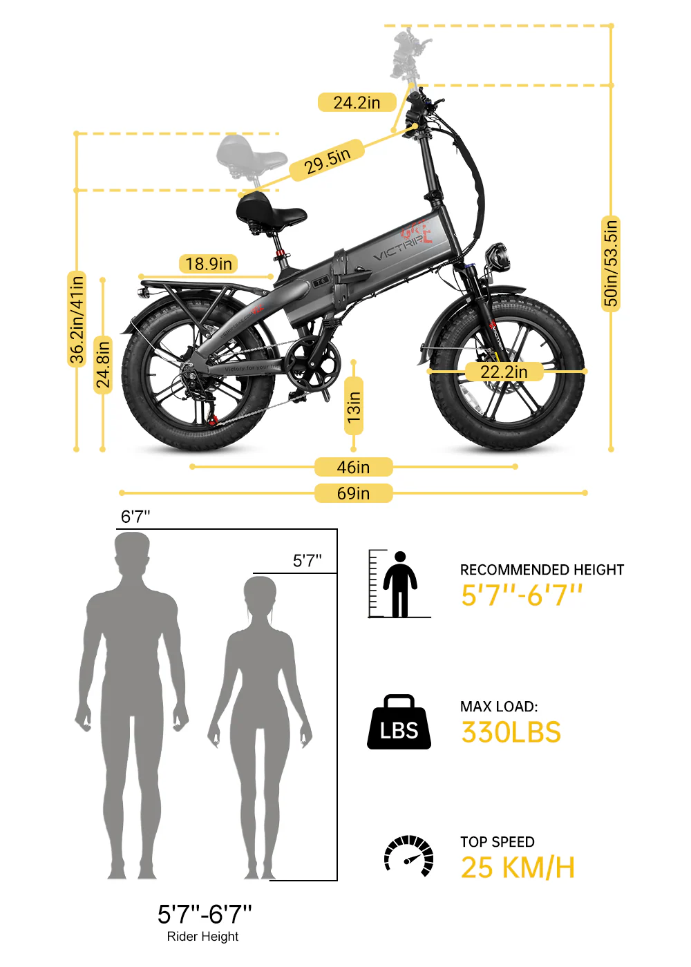 Recommended Riding Height –5’7″ ~ 6’7″